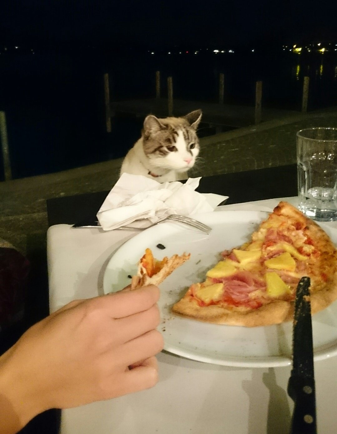 Кот ворует пиццу