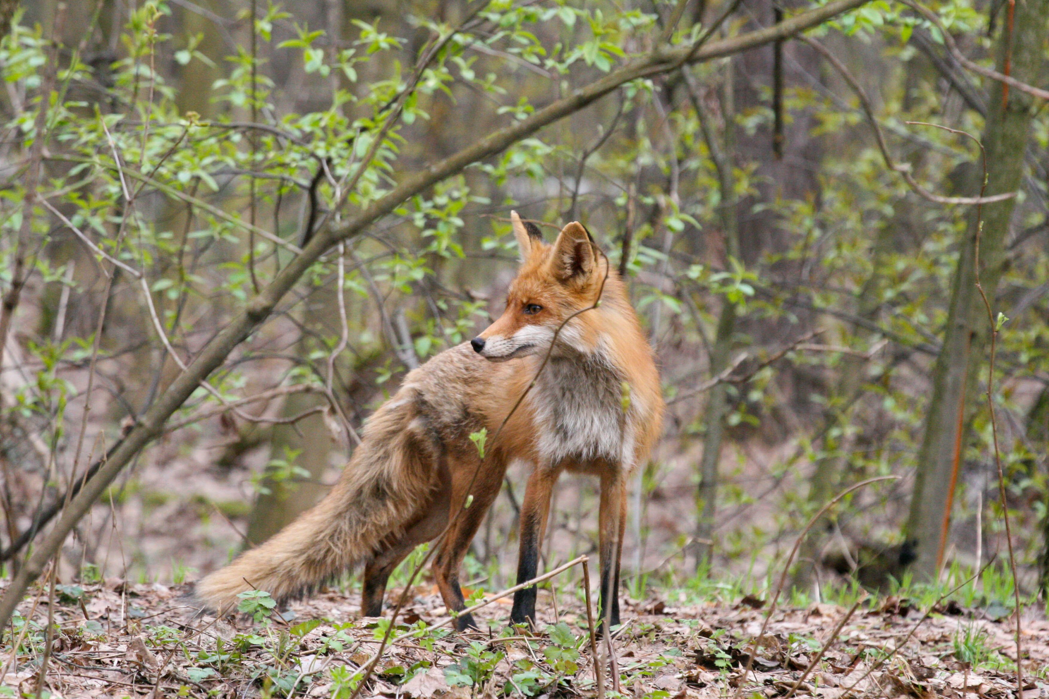 Лиса с лисятами весной