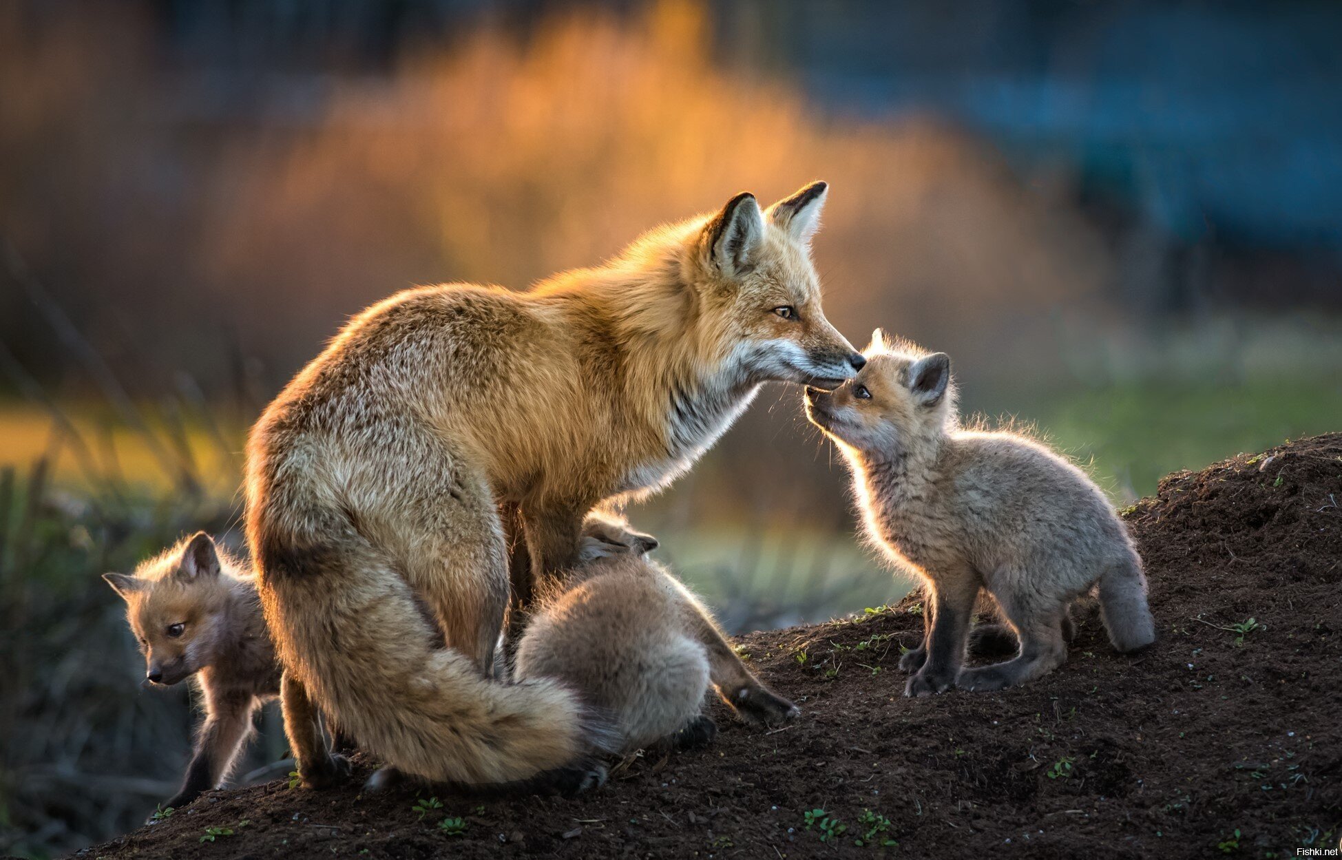 Лисичка с лисятами