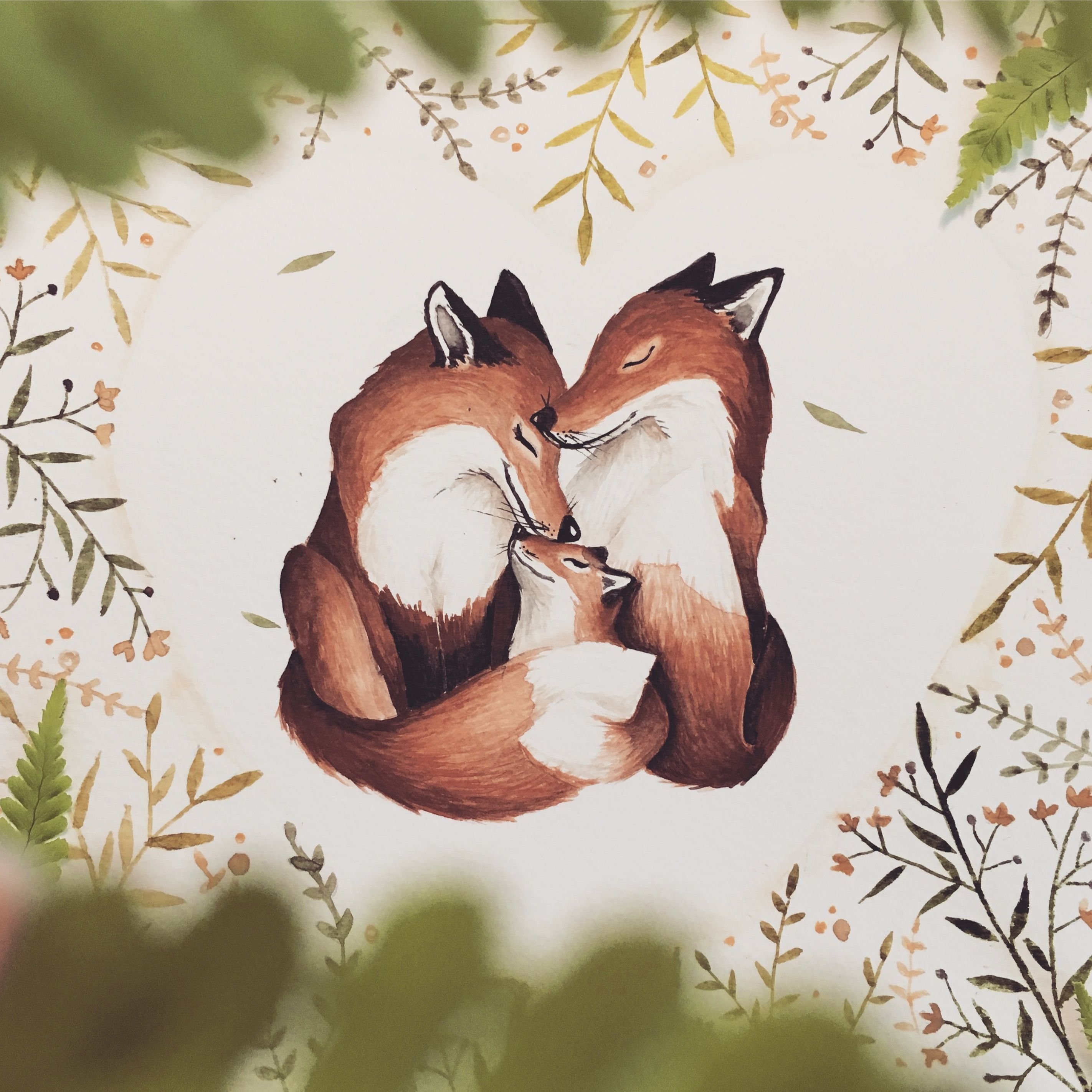 Семья акварельных Лис