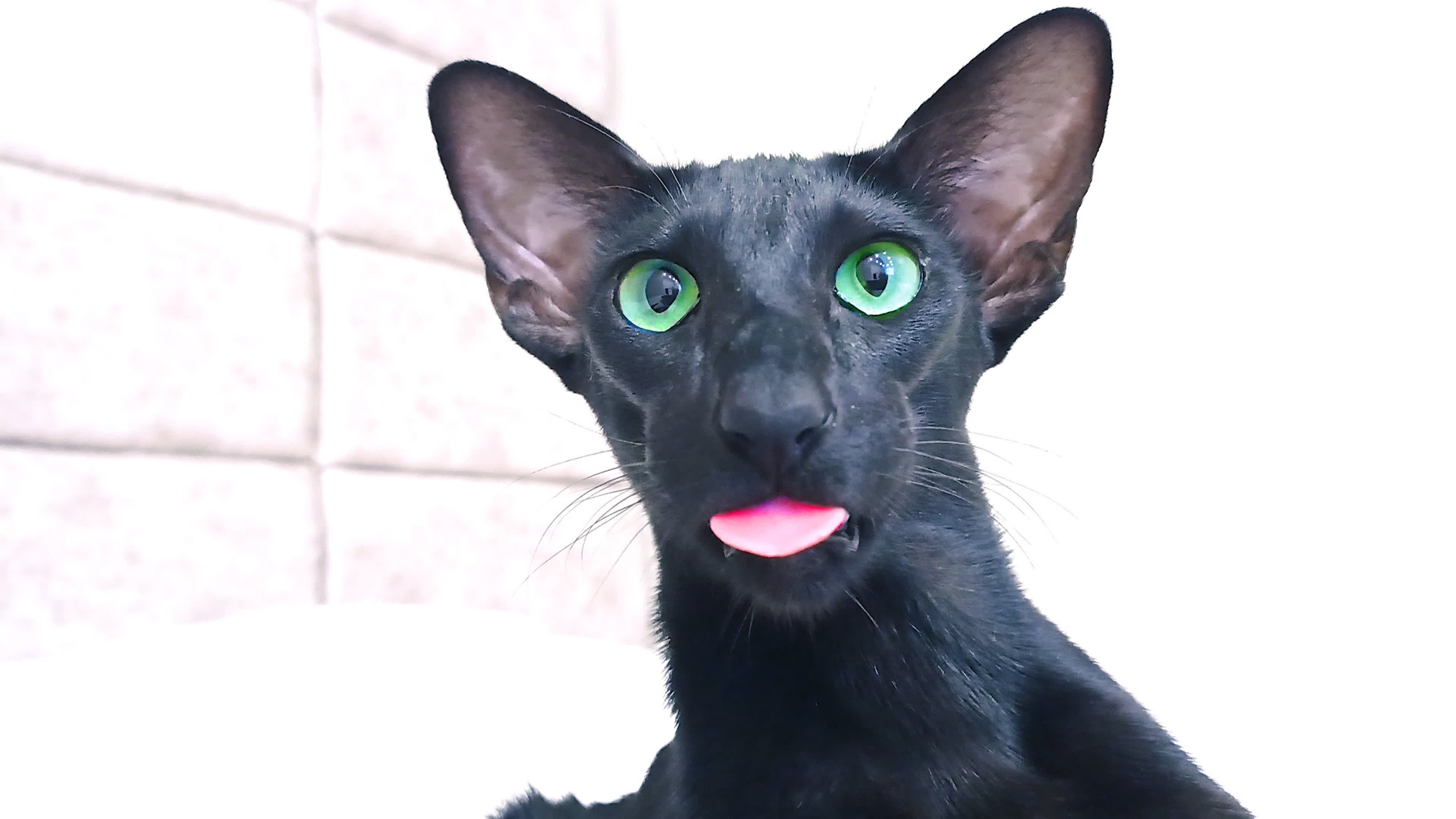 Ориентал чёрный с большими ушами страшный