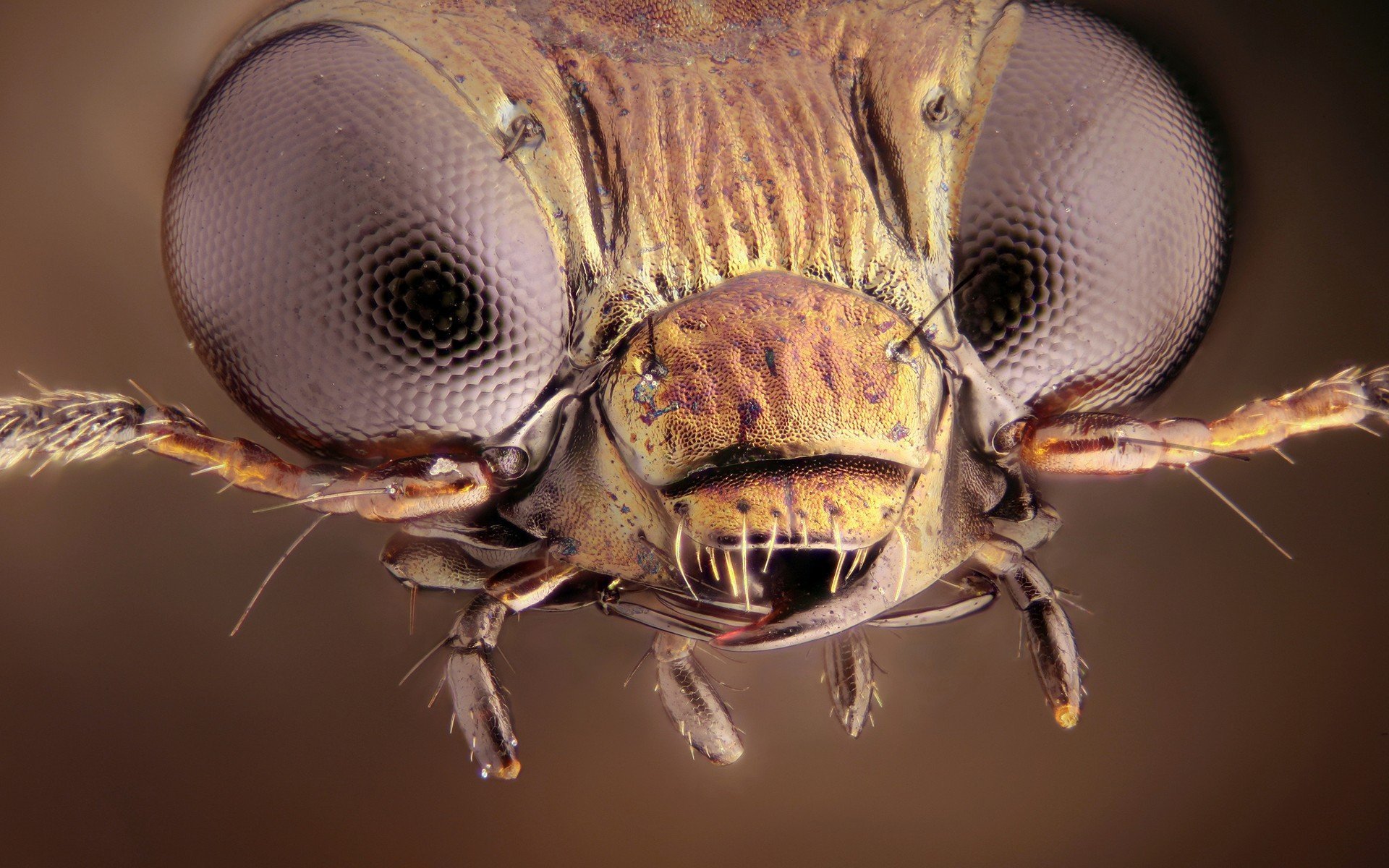 Морда мухи под микроскопом