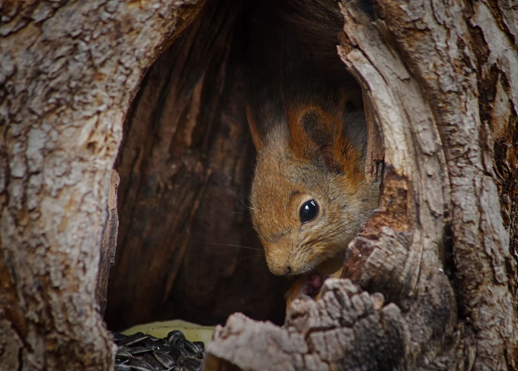 Белка в дупле с запасами