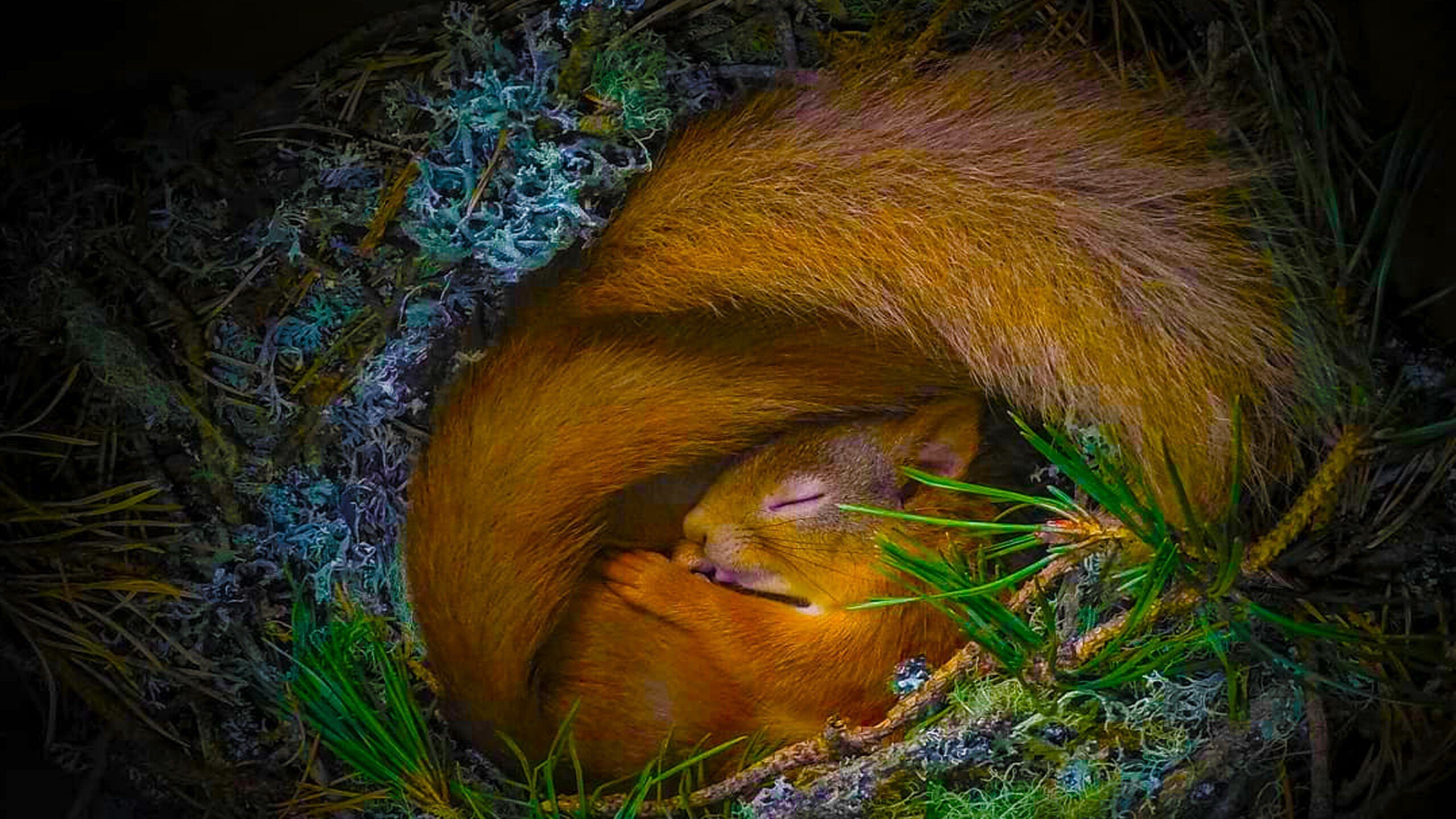 Белка спит в дупле