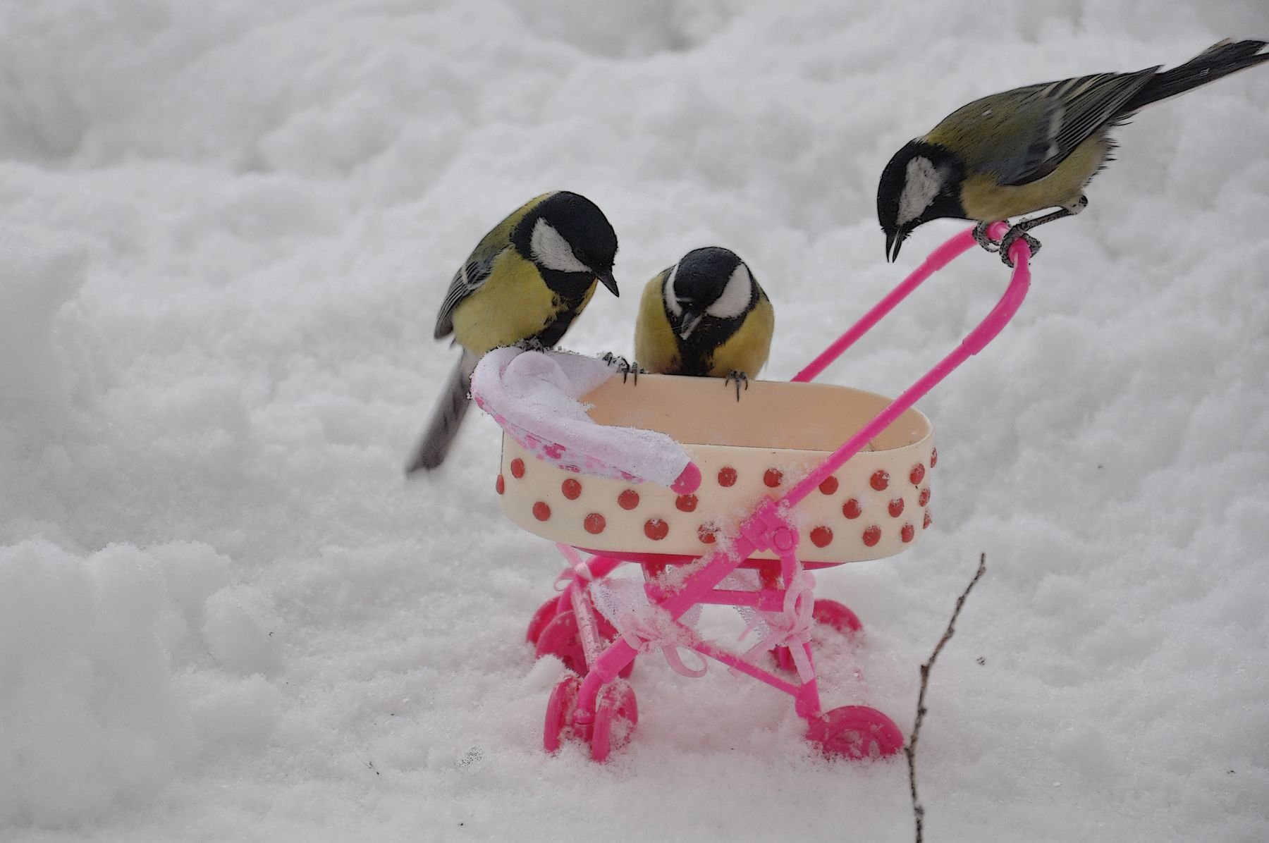 Птички на ветке зимой