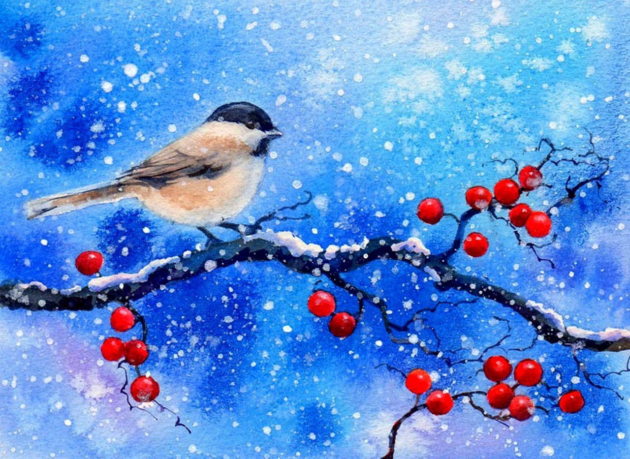 Птицы зимой живопись