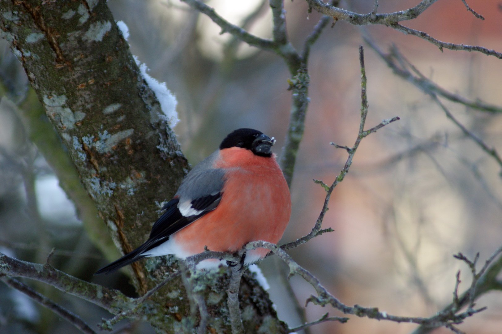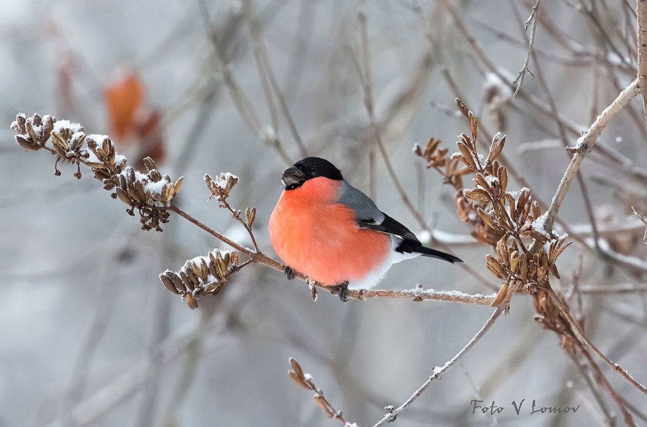 Снегирь нахохлился