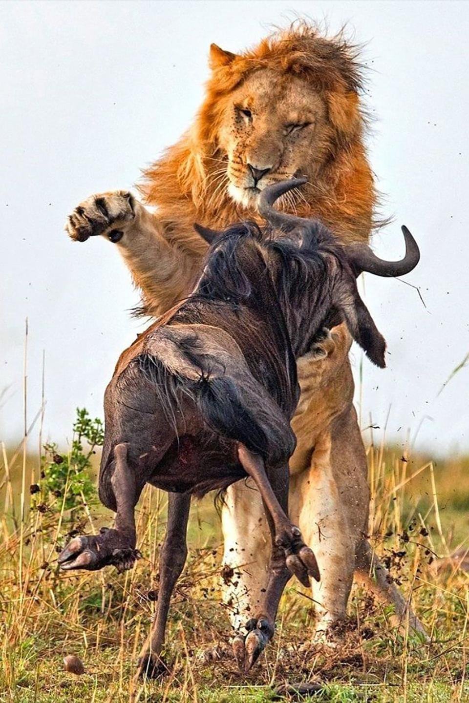 Лев охотится