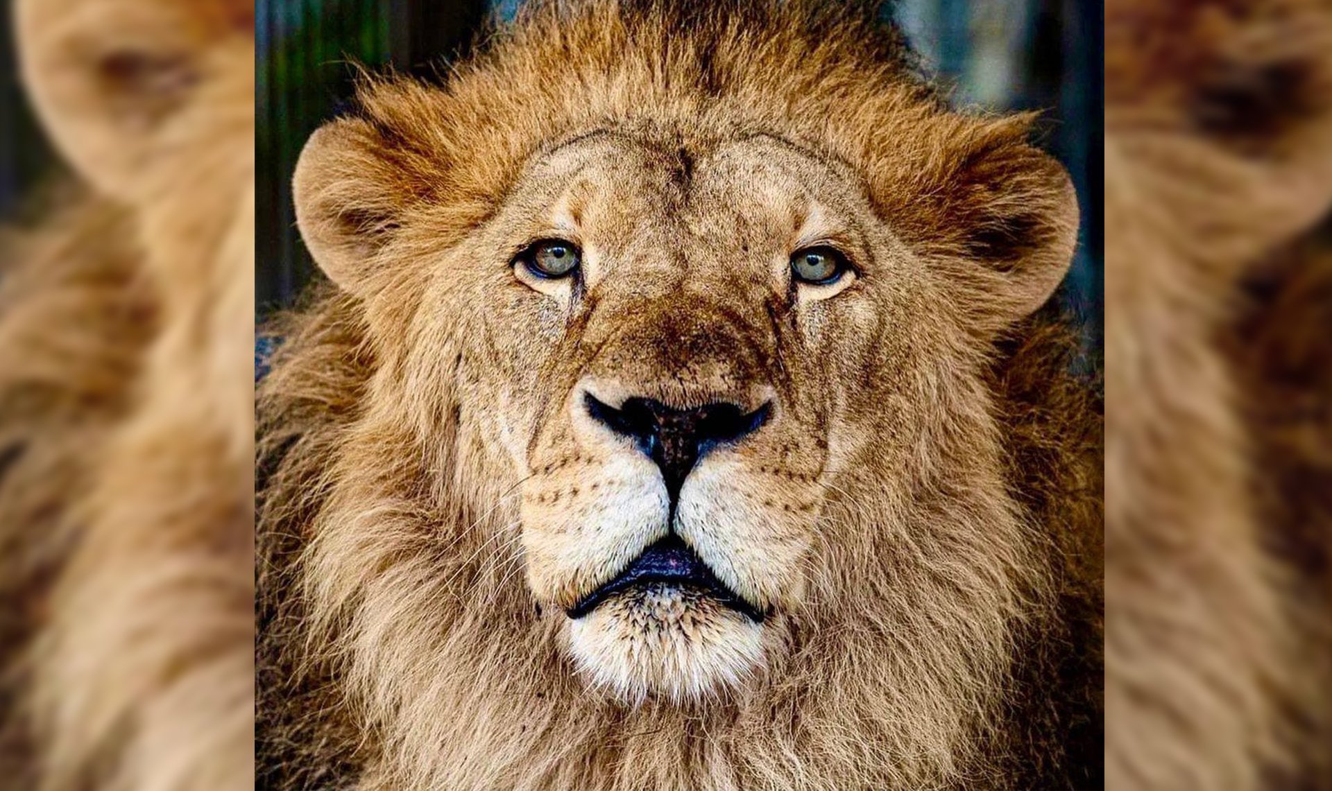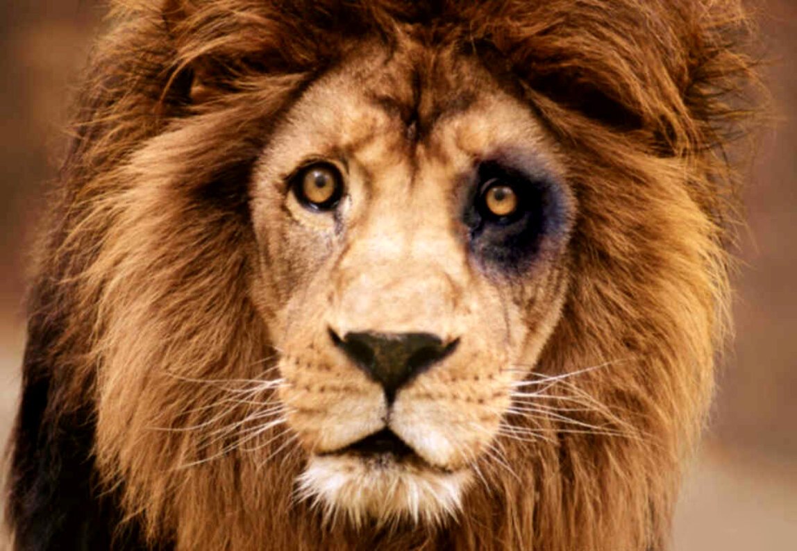Лев с окровавленной мордой