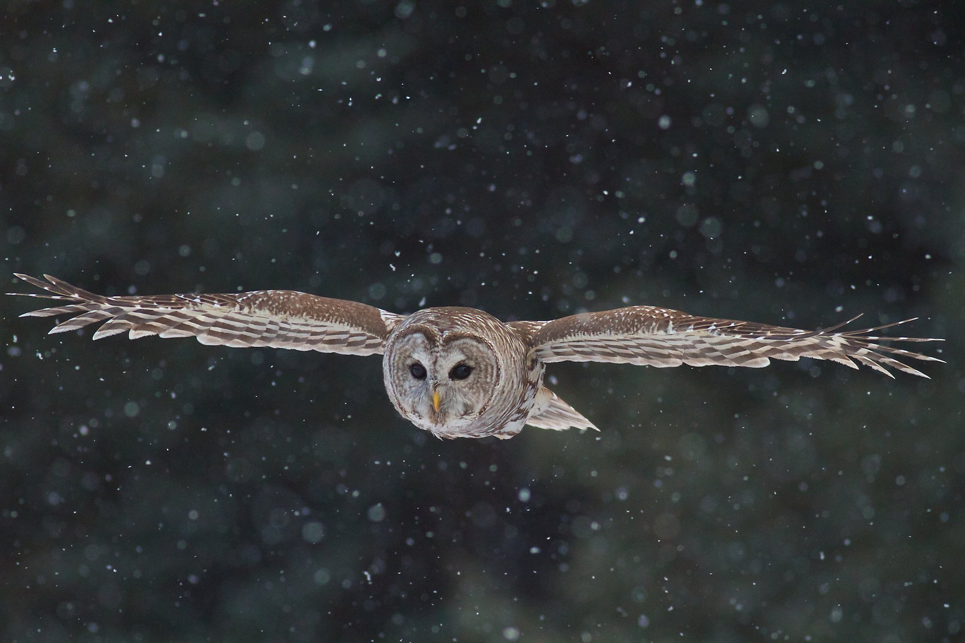 Бородатая неясыть в полёте