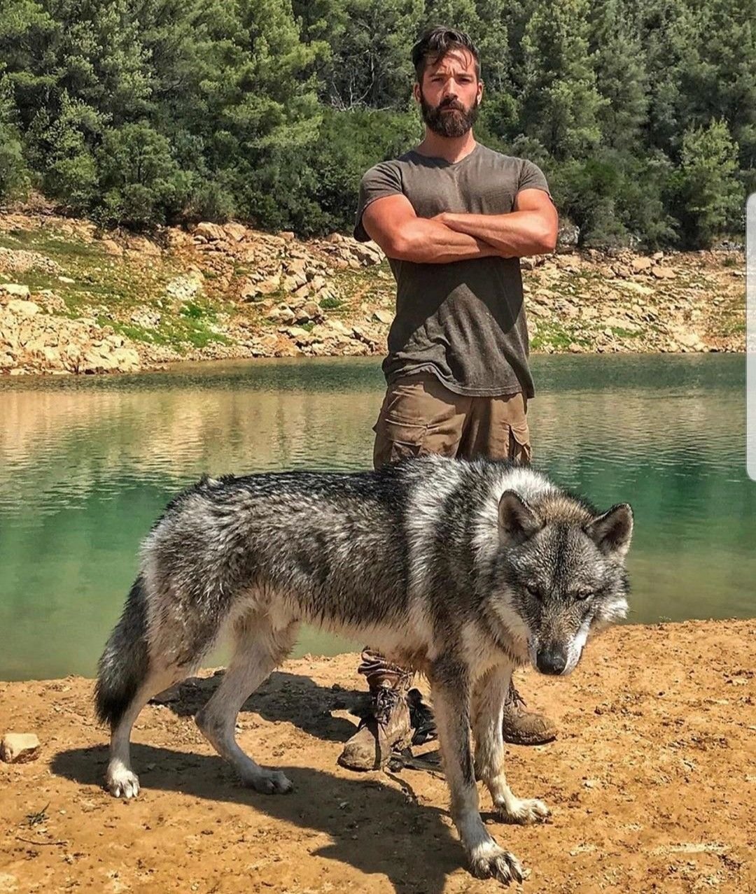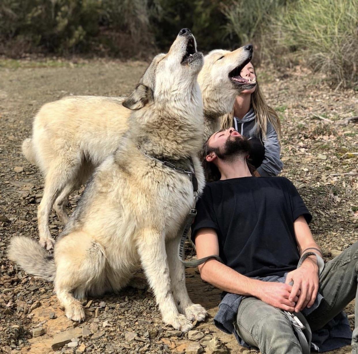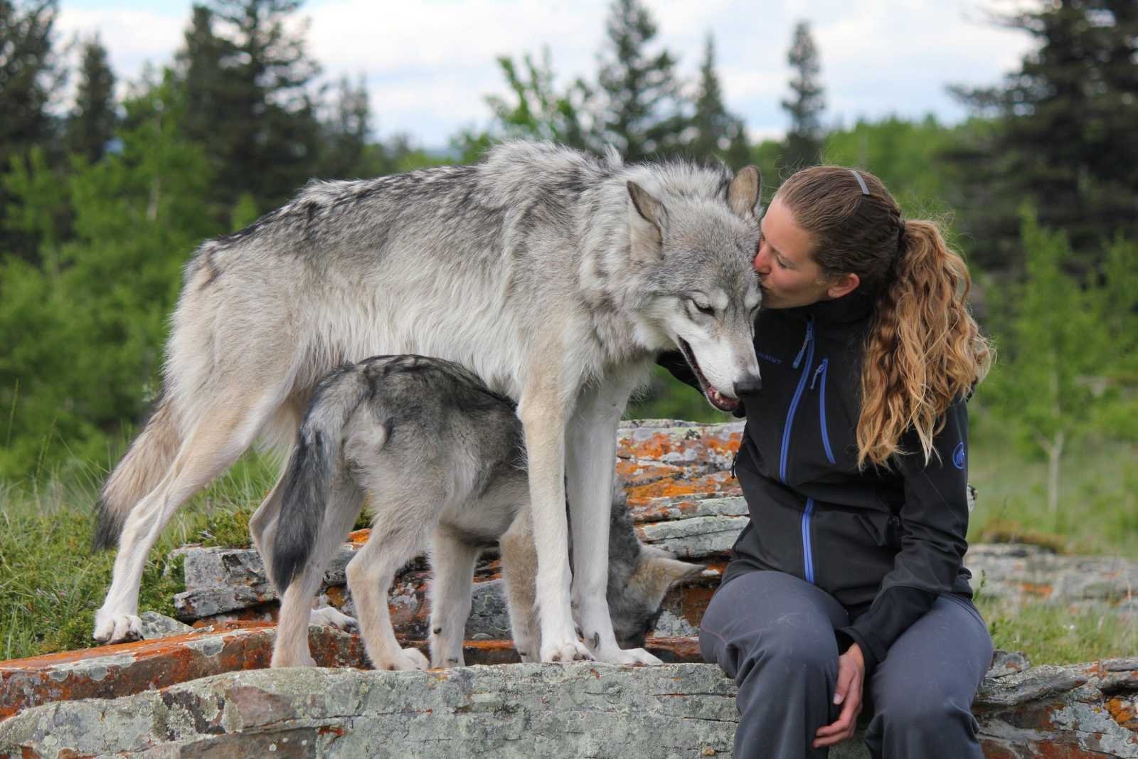 Волкособ вольфхунд с человеком