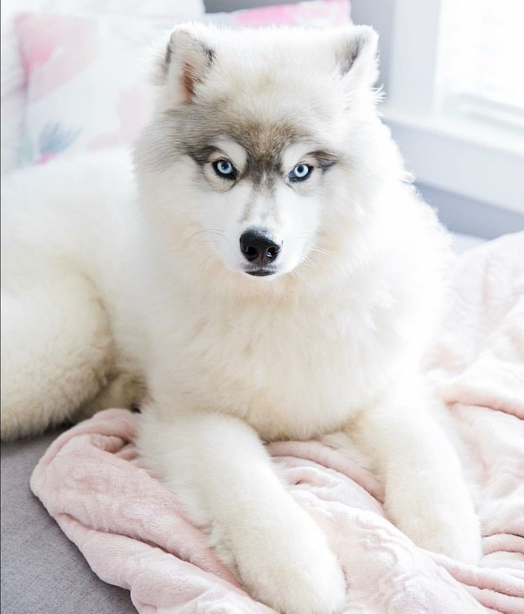 Хаски альбинос с голубыми глазами