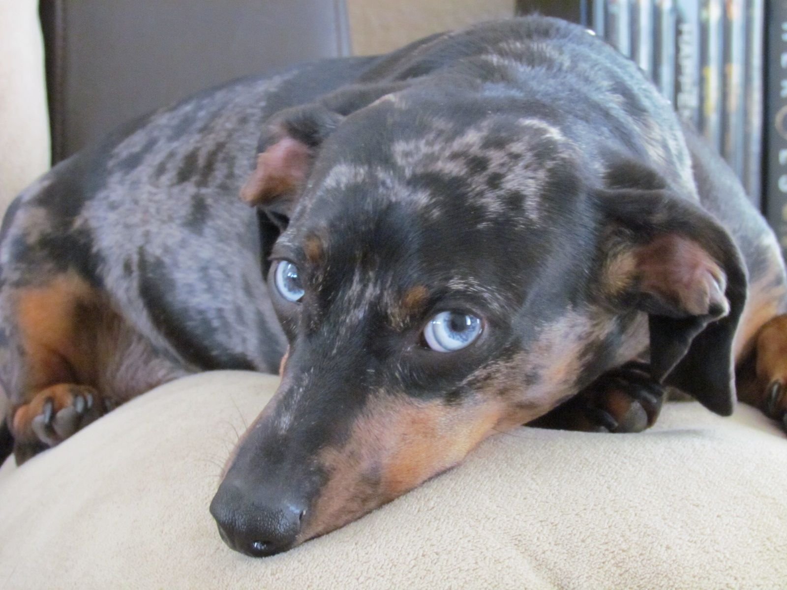 Мраморная такса с голубыми глазами