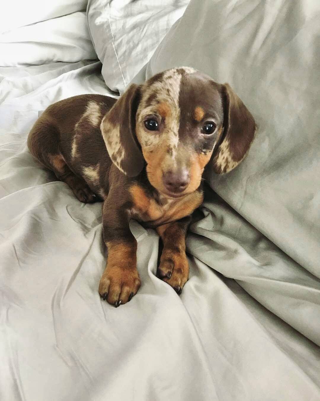 Щенок таксы пятнистый