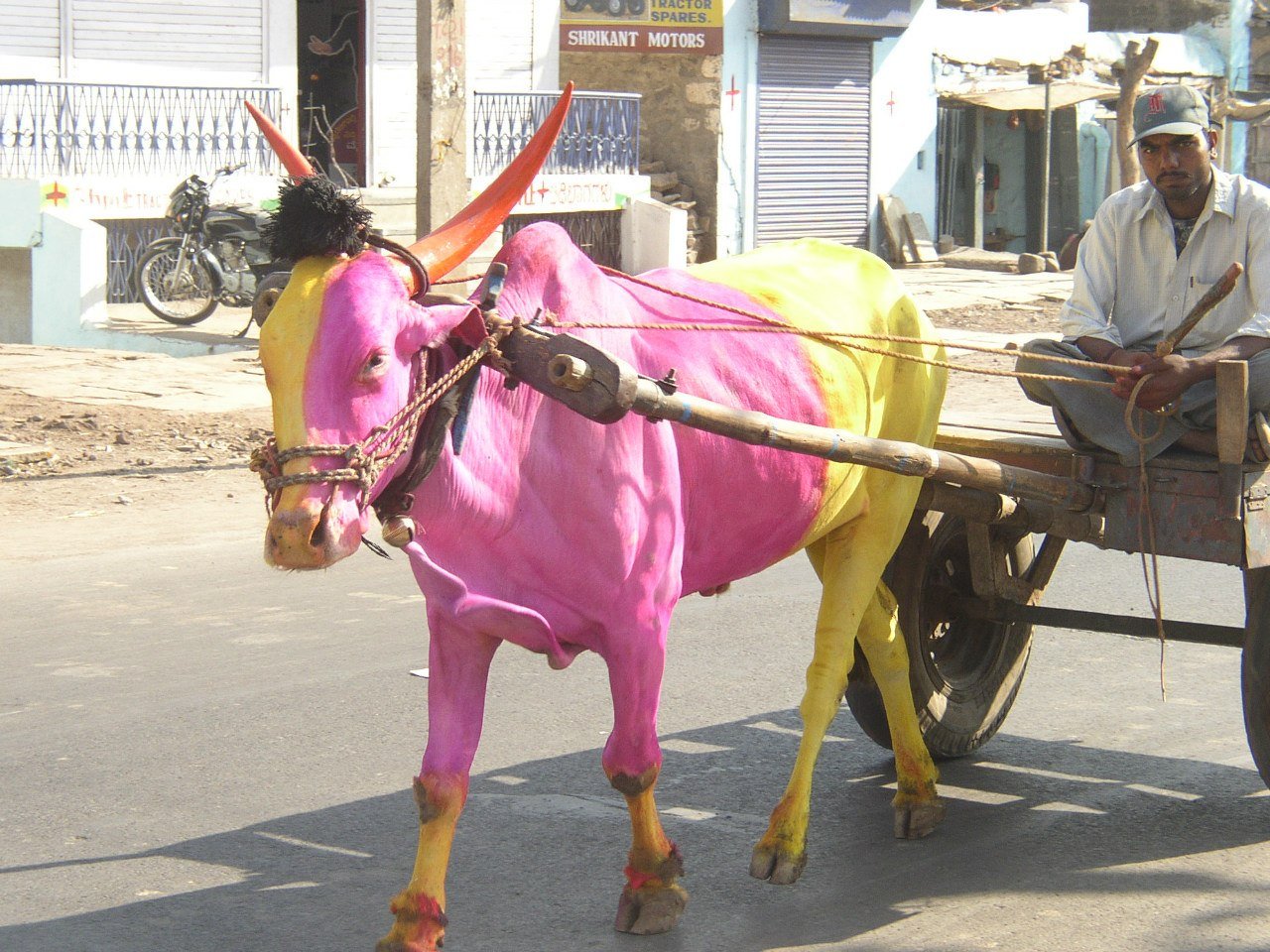 Цветная корова в Индии