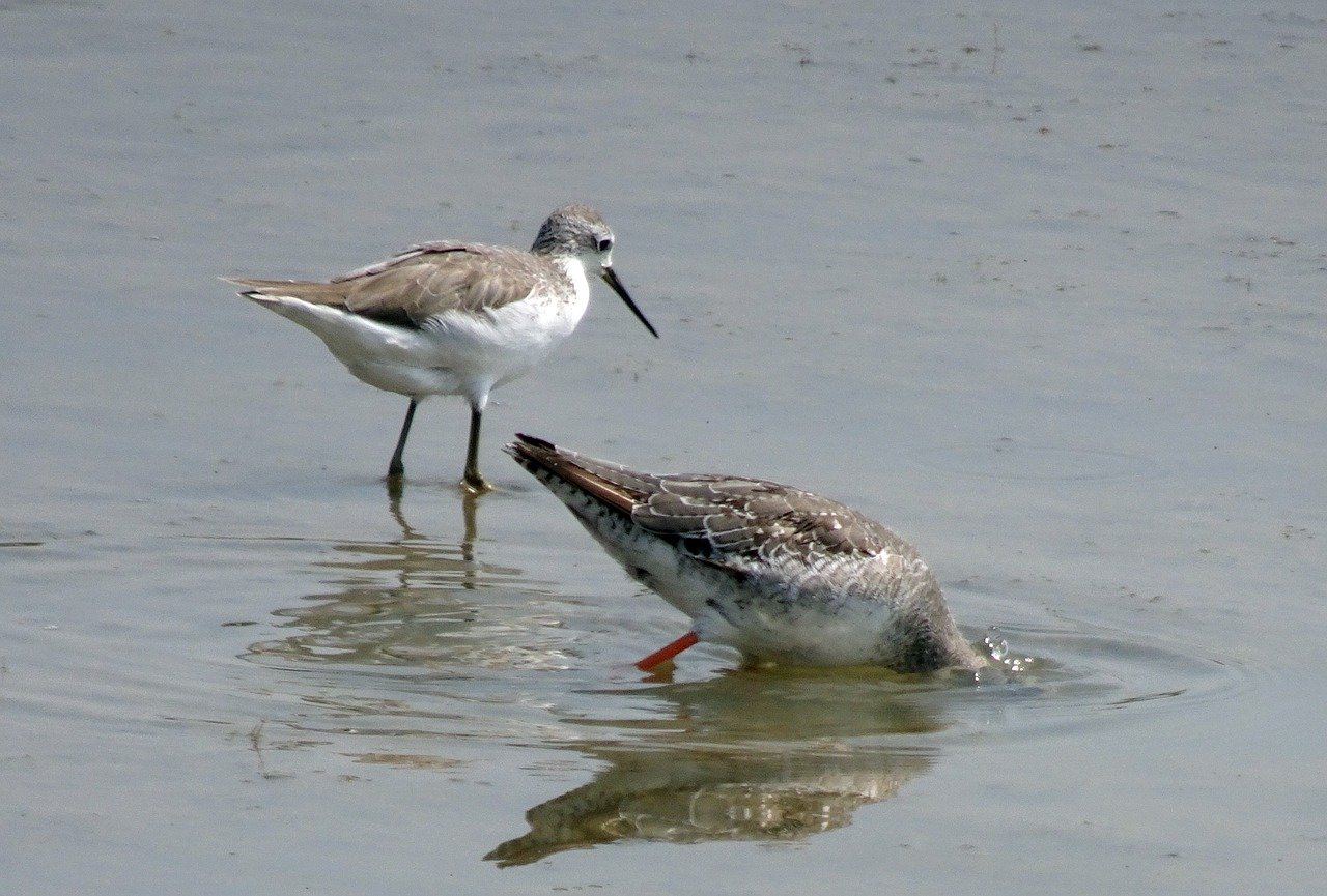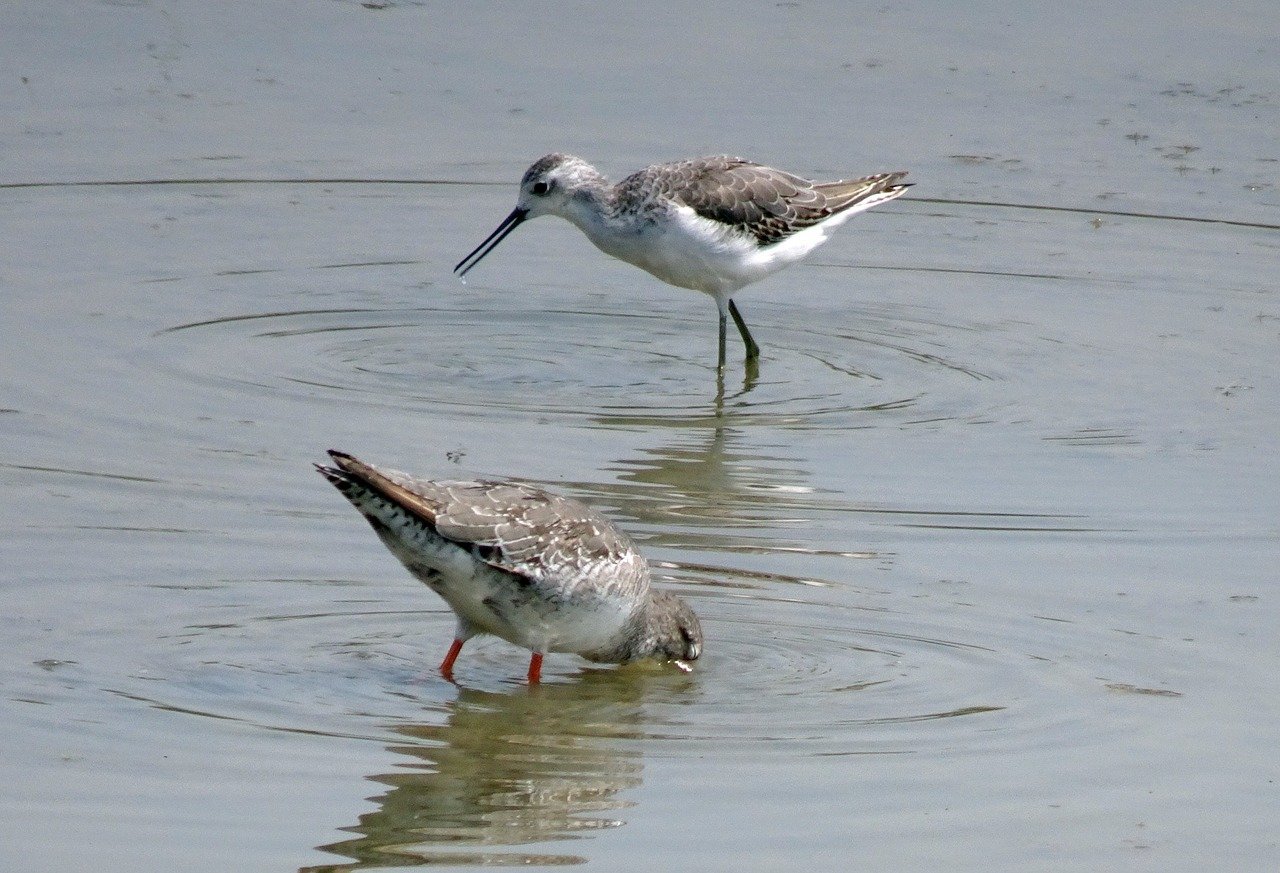 Кулик птица ловит рыбу