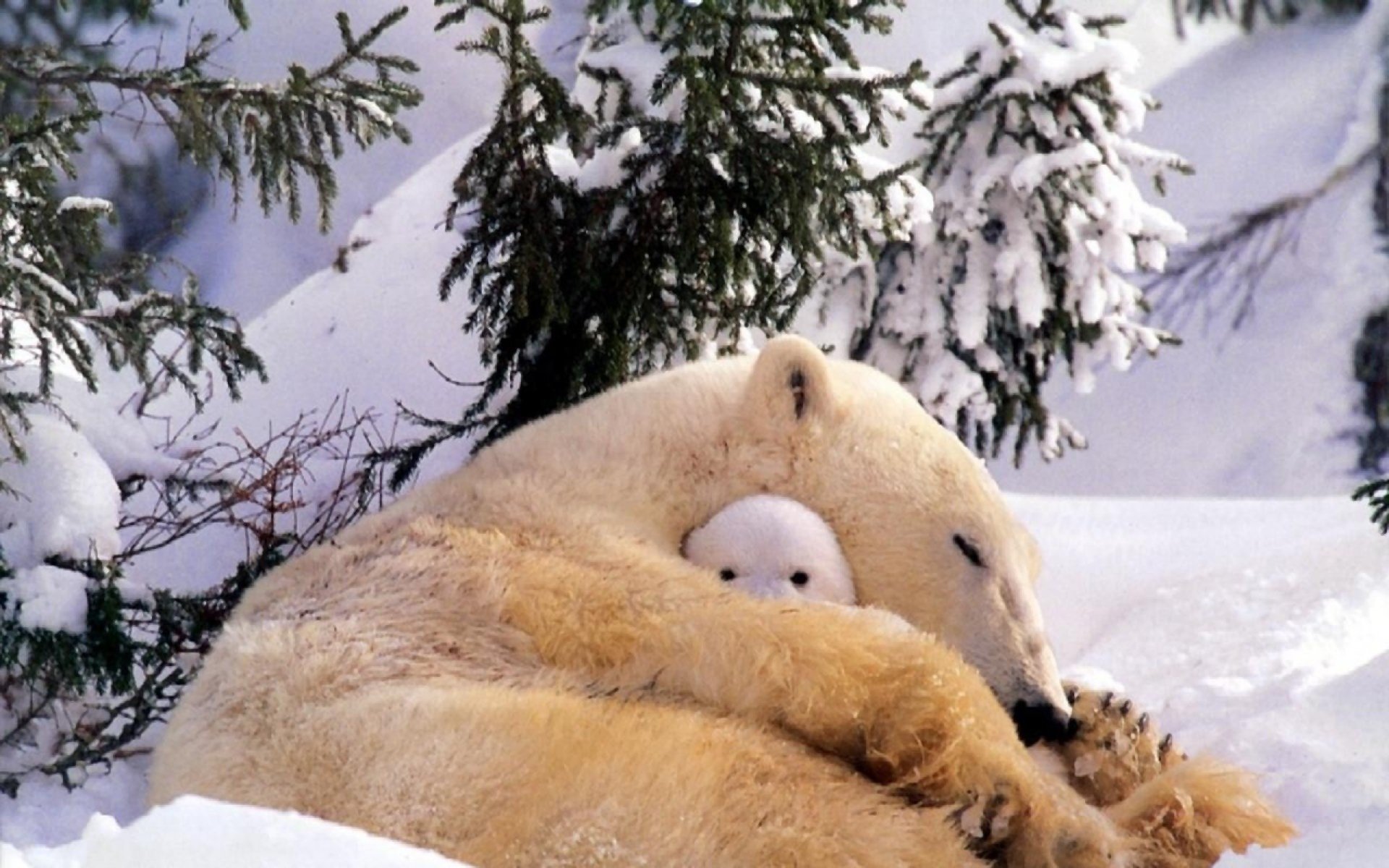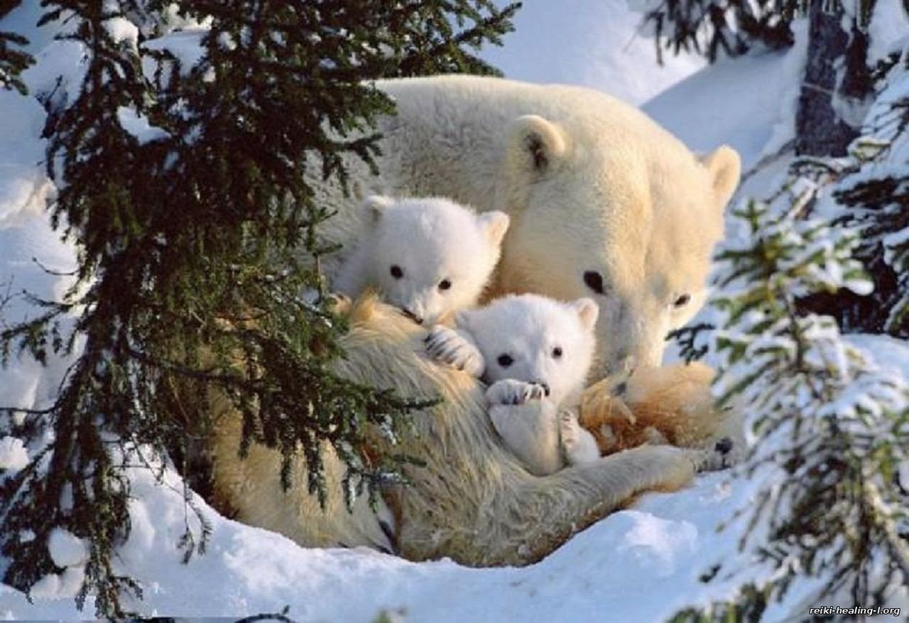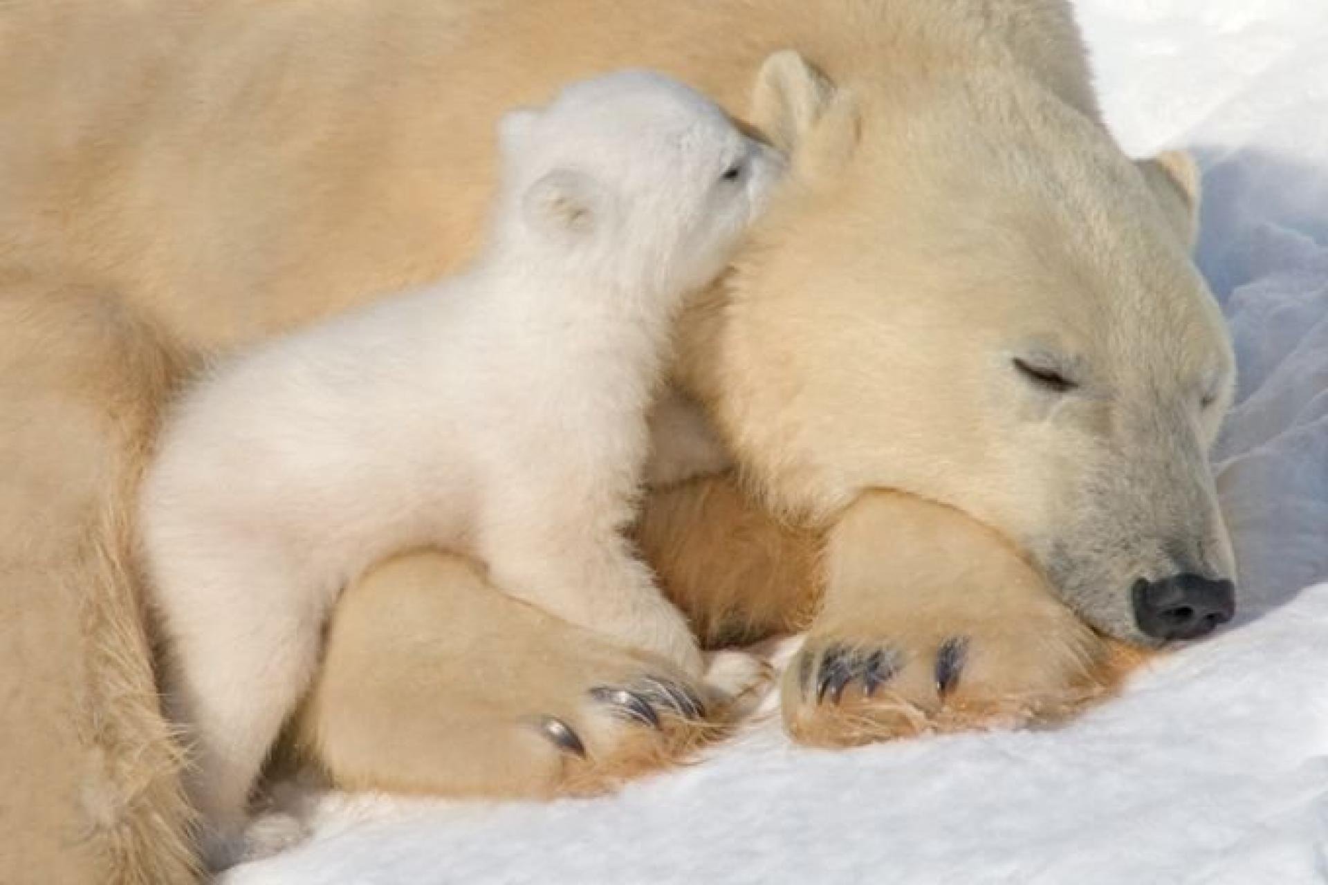 Мама белая Медведица с медвежонком