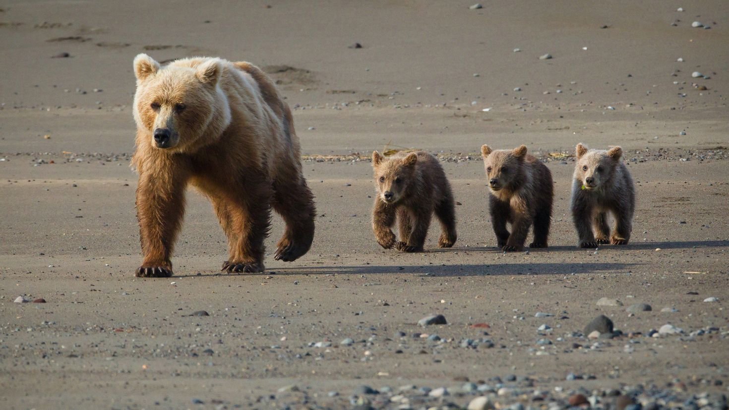 Медведица защищает медвежат