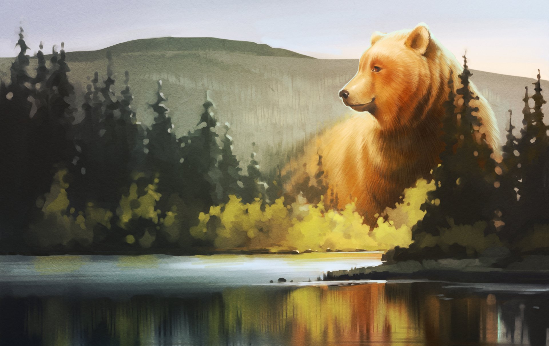 Пейзаж с медведями