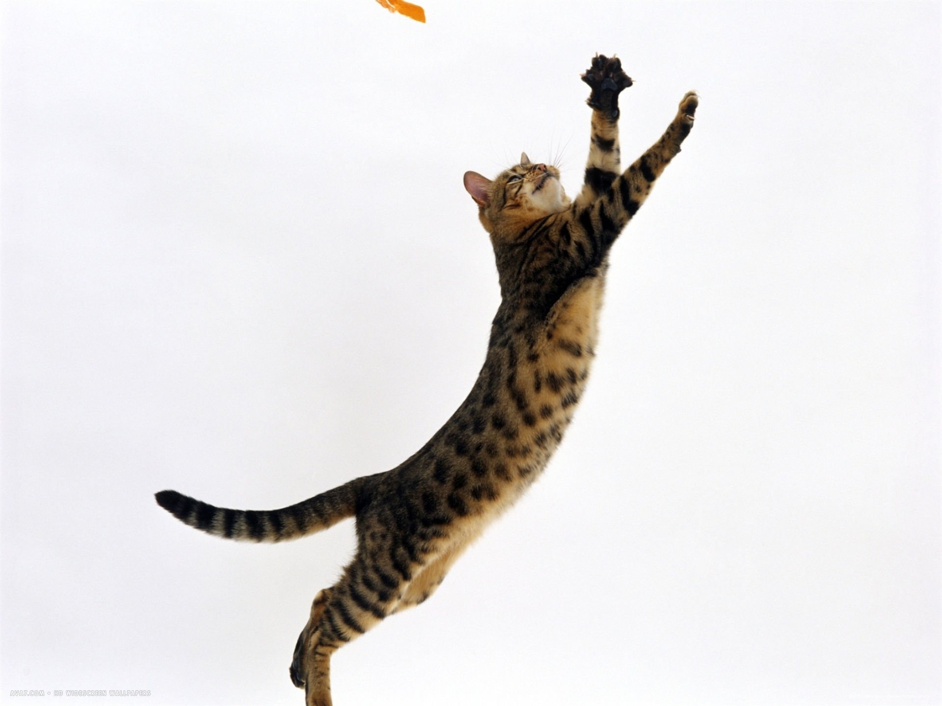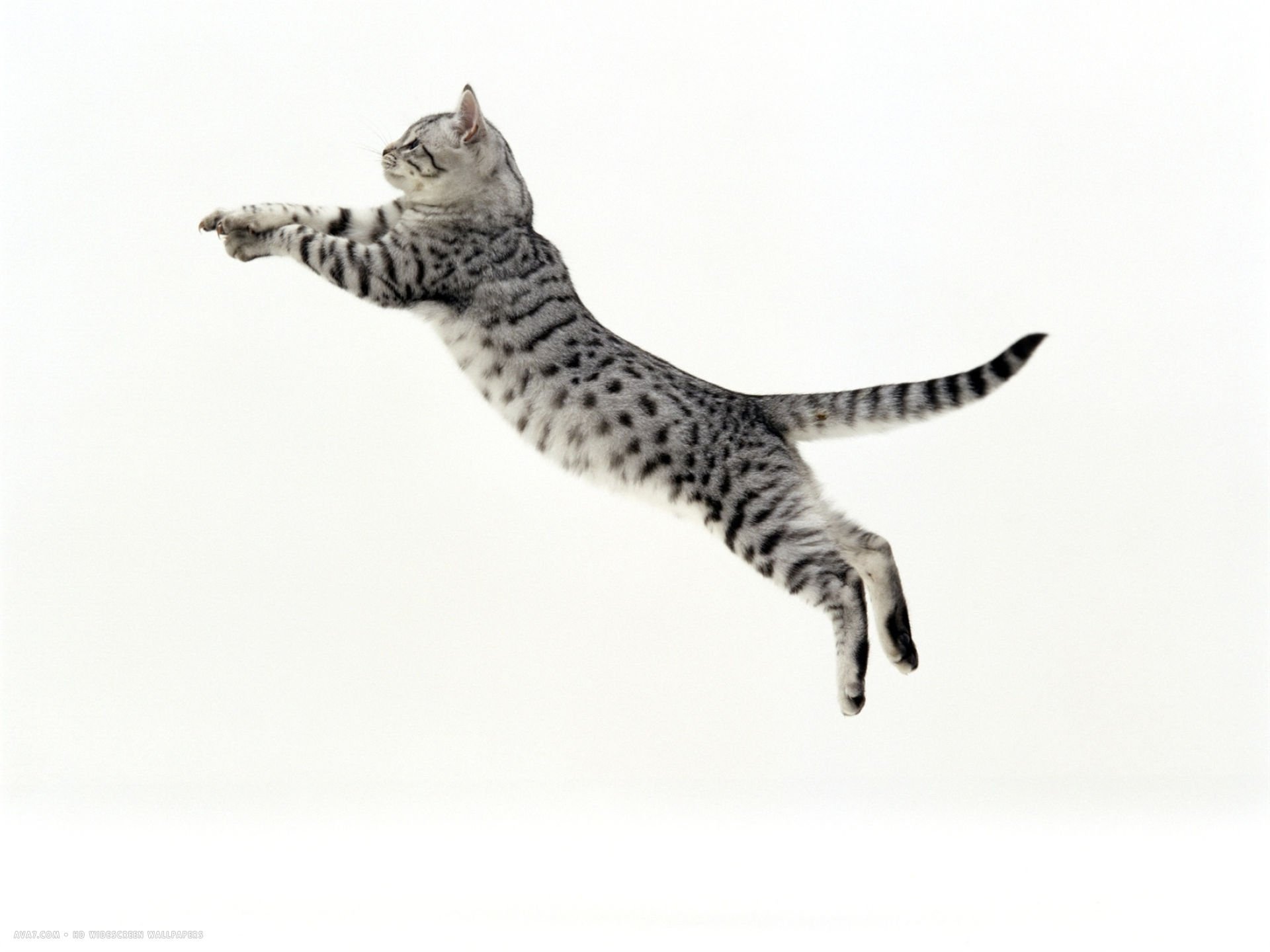 Кот в прыжке на белом фоне