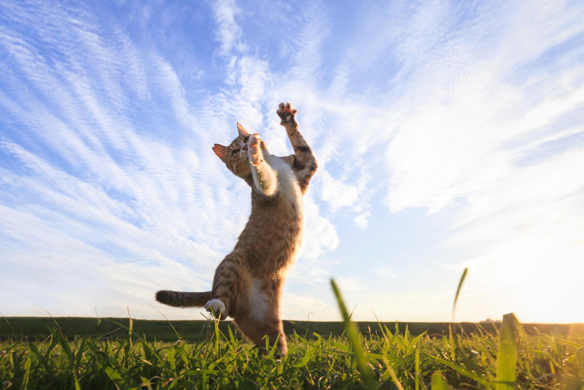 Кот подпрыгивает