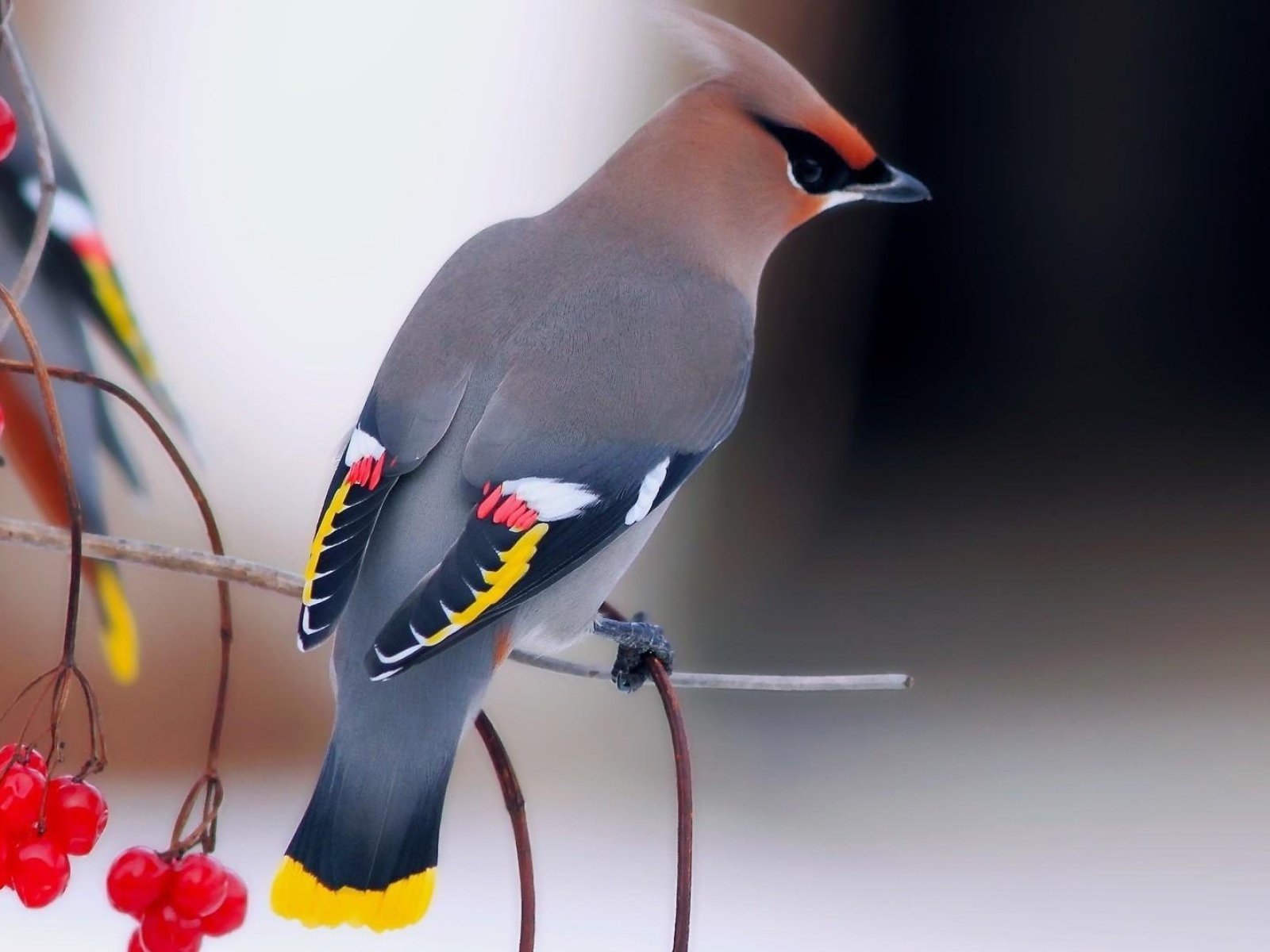Свиристель и красный Кардинал