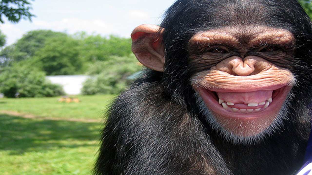 Шимпанзе улыбается