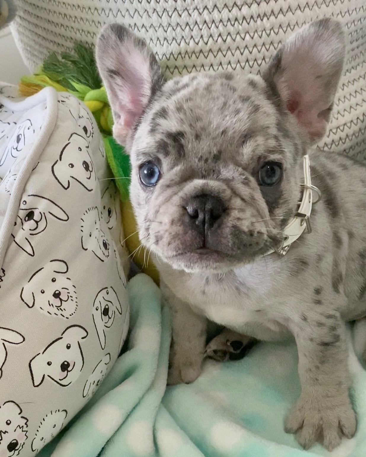 Французский бульдог белый с голубыми глазами
