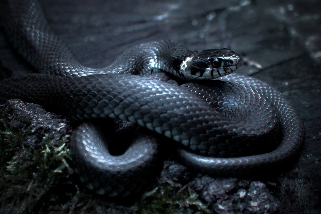 Черная змея с белой головой