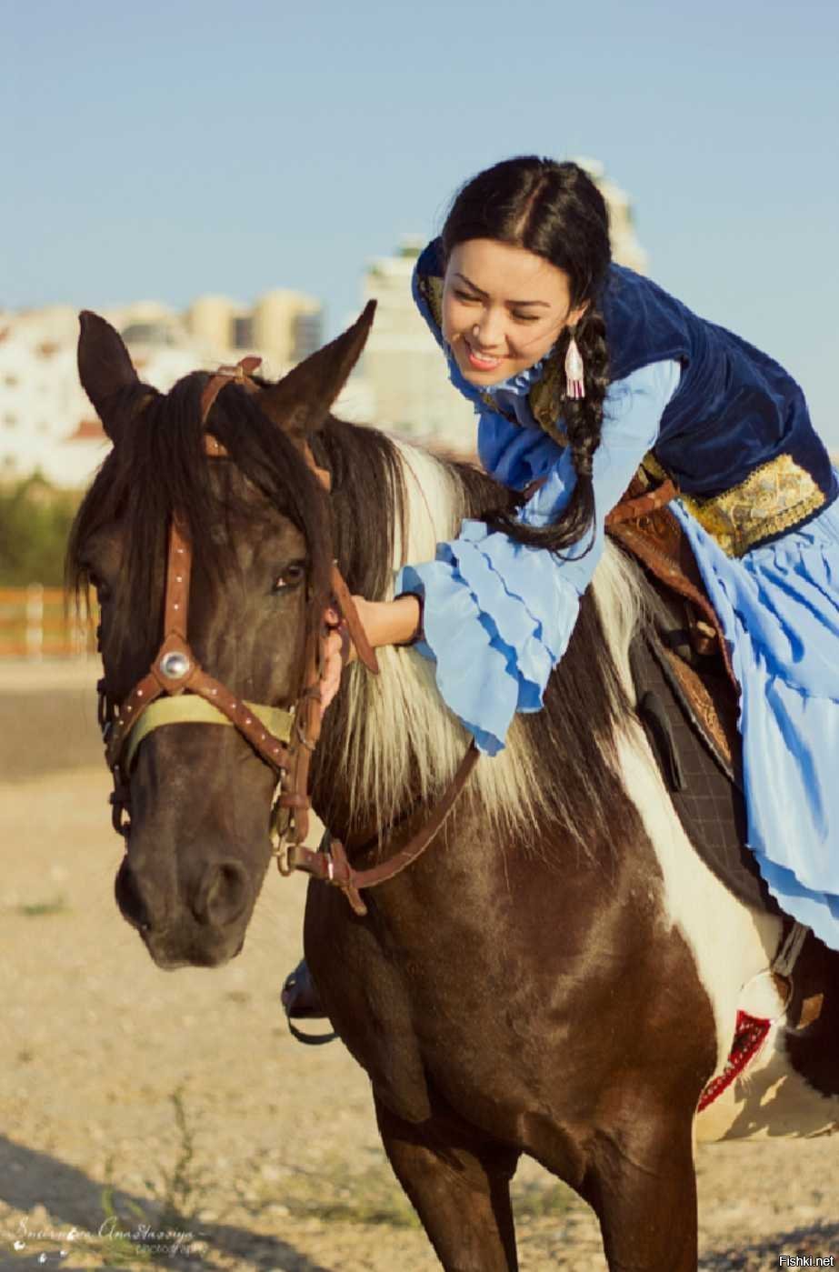 Казахские девушки на лошадях