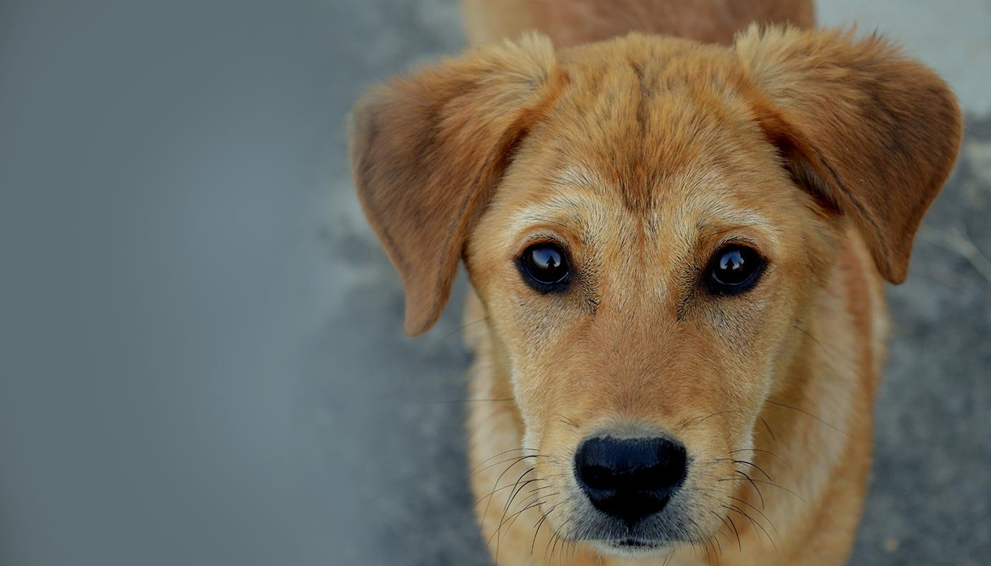 Собака дворняжка кремовая