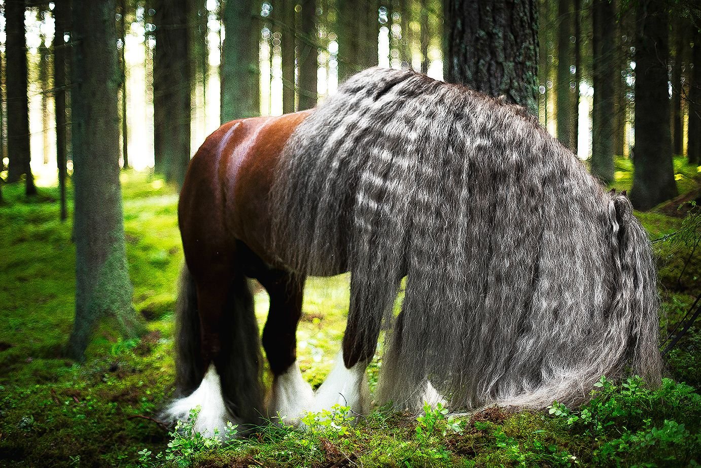 Лошадь Шайр с длинной гривой