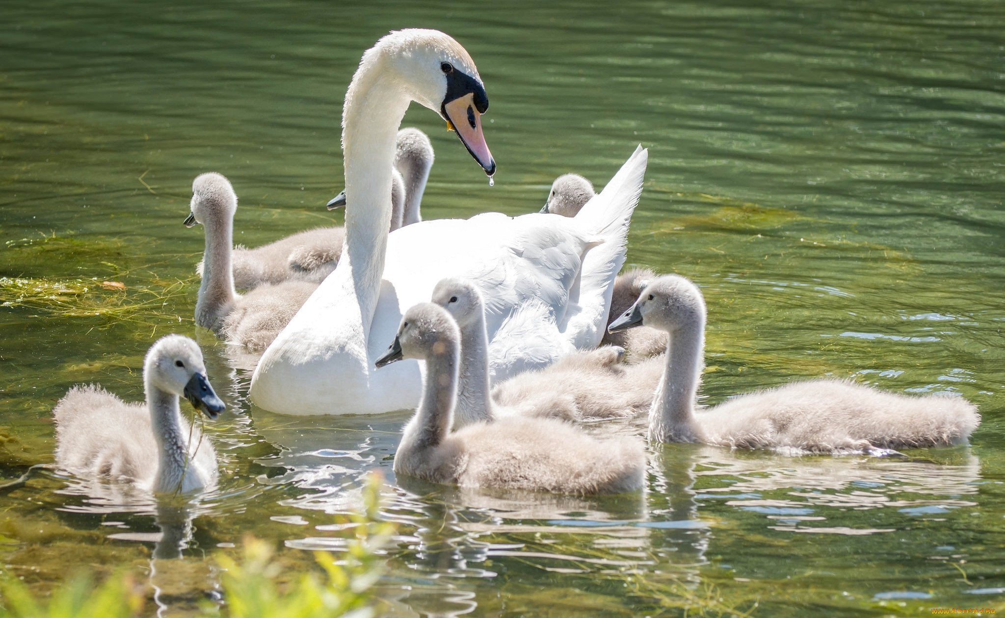 Лебедь с лебедятами