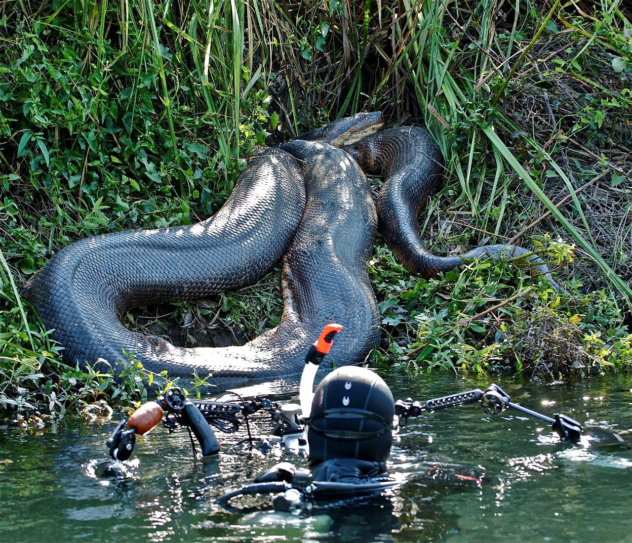 Анаконда питон проглотила человека
