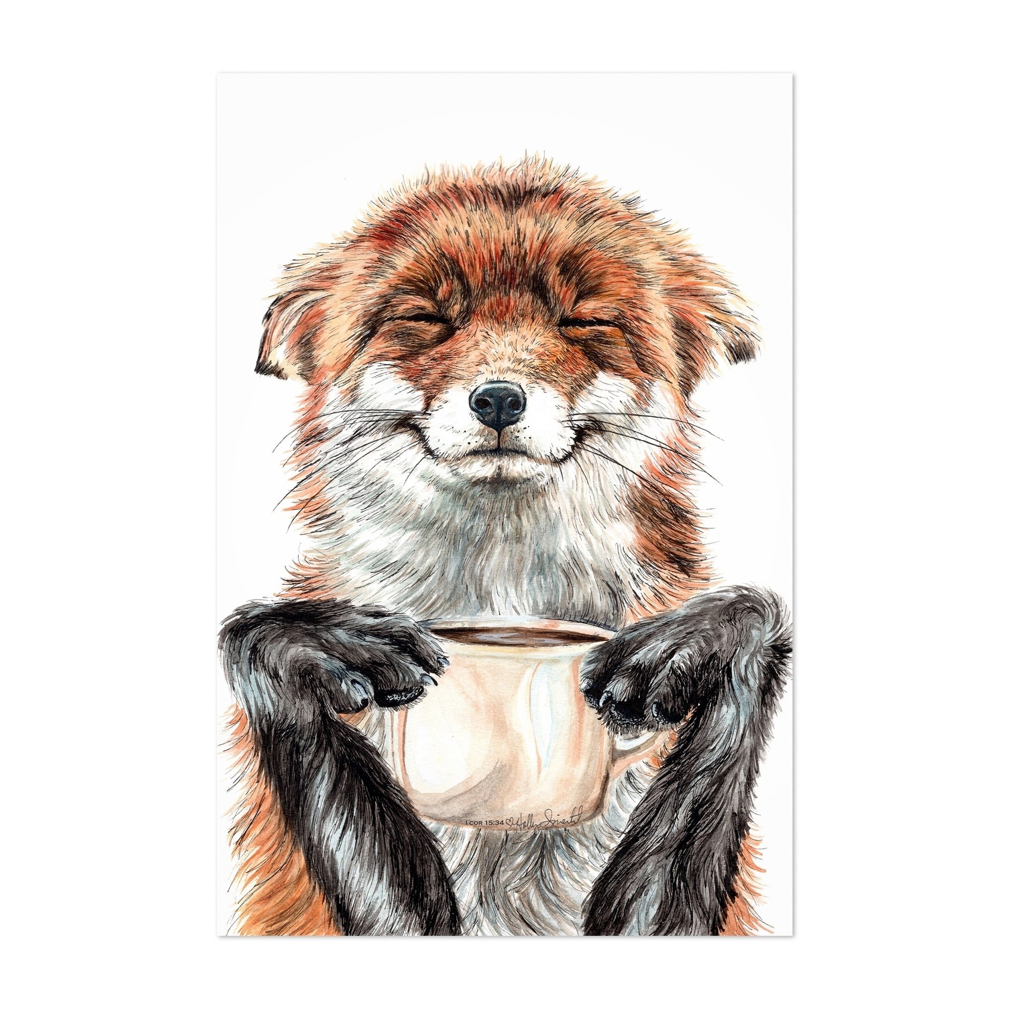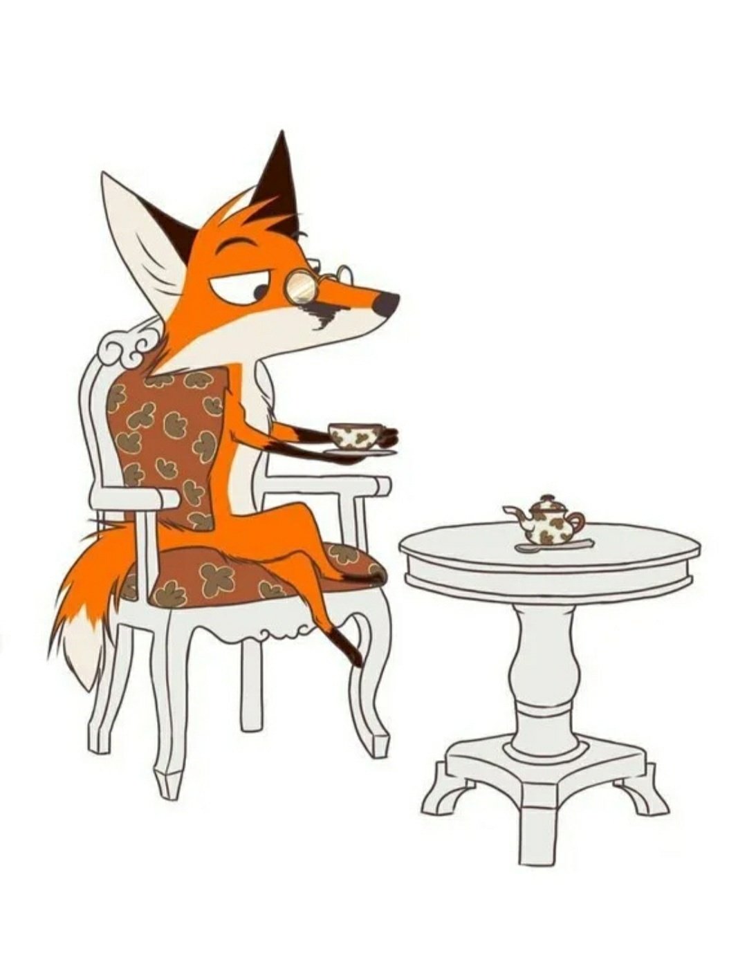 Лис пьет кофе