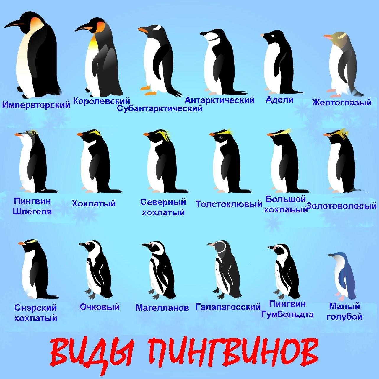 Виды пингвинов намрусском