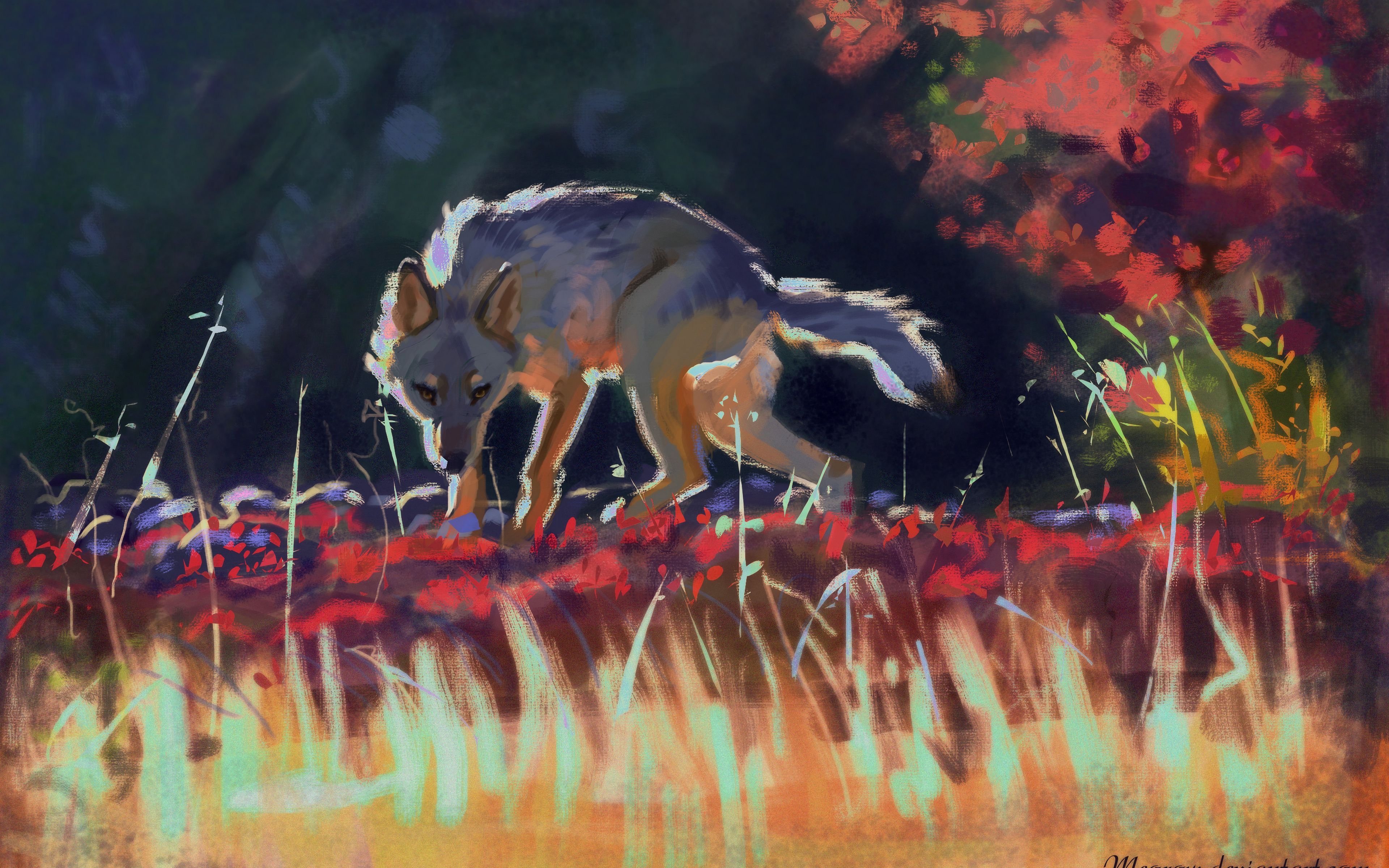 Волчонок живопись