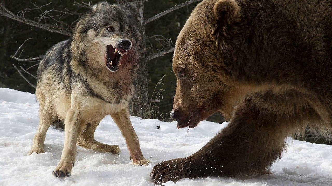Медведь Гризли против Волков