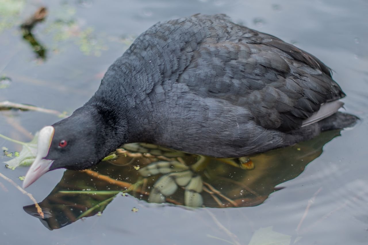 Утка лысуха нырок